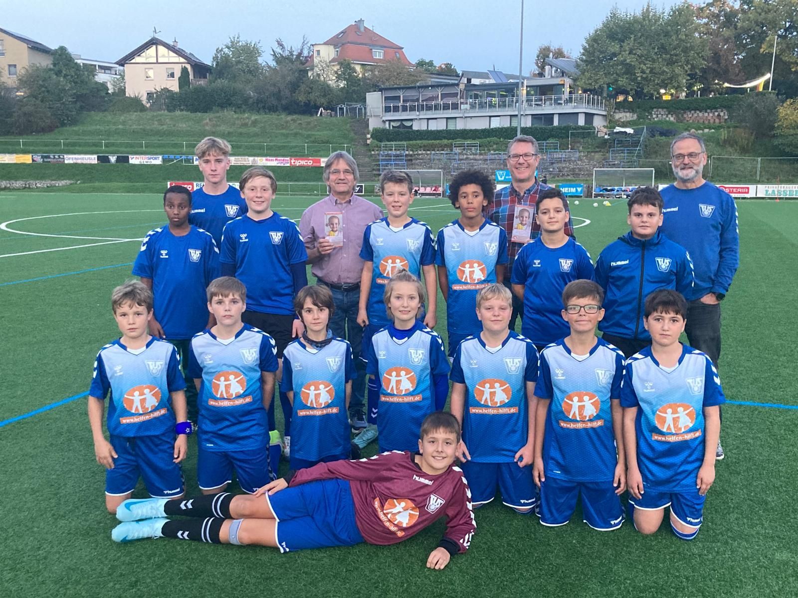 „Wollten etwas anderes auf der Brust“ Dank einer Elternspende läuft eine Jugendmannschaft des TuS Lörrach-Stetten ab sofort mit Werbung für ein Kinderkrebshilfeprojekt auf. Von Markus Greiß Lörrach. Auf den blauweißen Trikotoberteilen der E-Jugend-Mannschaft des TuS Lörrach-Stetten prangt künftig keine kommerzielle Werbung, sondern das stilisierte Bild zweier sich an den Händen haltender Kinder. Es ist das Logo des Fördervereins für krebskranke Kinder aus Freiburg, der dort gerade den Bau eines sogenannten „Elternhauses“ ermöglicht hat – einer temporären Wohnmöglichkeit für die Familien von kranken Mädchen und Jungen, die im Zentrum für Kinder- und Jugendmedizin (ZKJ) direkt daneben behandelt werden. Um den Trikotsatz einschließlich der unentgeltlichen Werbung für das soziale Projekt zu finanzieren, haben Eltern der Jugendspieler 1500 Euro gespendet. Martin Renner, der die Idee hatte, ist sehr zufrieden mit der Wahl. „Vor vier Jahren haben wir dasselbe schon mal für den Verein Chinderlache gemacht. Da haben fünf Väter die Trikots gespendet.“ Diesmal profitiert der Förderverein für krebskranke Kinder vom elterlichen Engagement, worüber sich Claus Geppert von der Fördervereinsleitung freut. Da der Verein ausschließlich spendenfinanziert ist, ist öffentliche Aufmerksamkeit für sein Projekt „Elternhaus“ sehr willkommen. Der laut Geppert „in Schlafanzugentfernung“ von der Kinderklinik gelegene Neubau mit 100 Betten in 45 Zimmern bietet Familien von schwerkranken Kindern, die aus dem ganzen Bundesgebiet und dem Ausland kommen, ein temporäres Zuhause. Jede Familie kann dort solange bleiben, wie es die Behandlung erfordert. 17 Millionen Euro hat das neue Haus gekostet. Sein erstes eigenes Elternhaus hatte der Förderverein, für den mittlerweile 27 Personen arbeiten, bereits 1995 eröffnet. „Ihr unterstützt das Elternhaus, das ist sagenhaft!“, bedankte sich Geppert herzlich bei den Jugendkickern, die ihre nagelneuen Trikots für das Pressefoto erstmals übergestreift hatten. „Es ist wichtig, das ihr versteht, wofür ihr das macht!“, ermahnte Martin Renner die Kids – und kam mit seiner Botschaft zumindest teilweise an. „Ich finde es gut, bei sowas mitzuhelfen“, meinte ein Teammitglied. „Das Trikot ist eigentlich fast gleich, aber größer als das alte“, freute sich derweil ein Mannschaftskollege über ganz praktische Vorteile des neuen Outfits. Dann ging’s endlich weiter mit dem abendlichen Training. [Bildunterschrift:] Die Kinder der E-Jugend des TuS Lörrach-Stetten freuen sich zusammen mit Claus Geppert (fliederfarbenes Hemd), Martin Renner (kariertes Hemd) und Michael Tittel (r. hinten) über die neuen Teamtrikots. Foto: Markus Greiß Quelle: Die Oberbadische